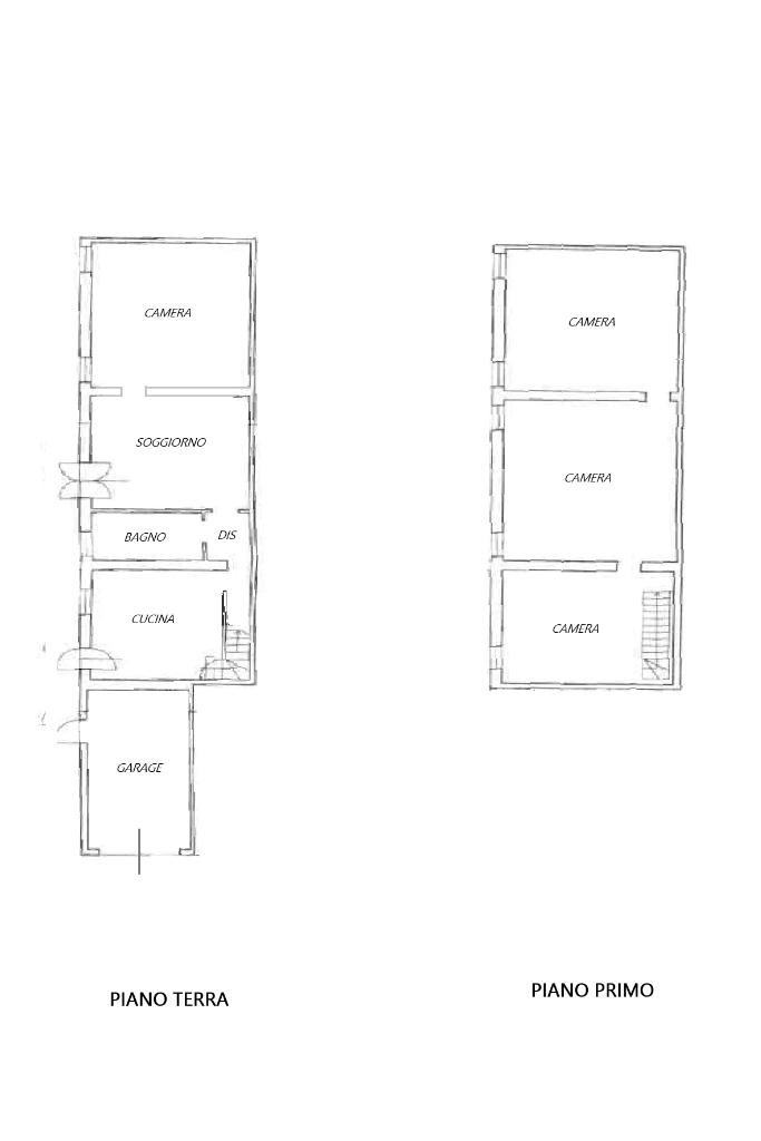 Doppio ingresso al piano terra (uno direttamente in cucina e uno in soggiorno), il quale è composto da cucina abitabile, soggiorno di ottime dimensioni, camera da letto matrimoniale e bagno finestrato.