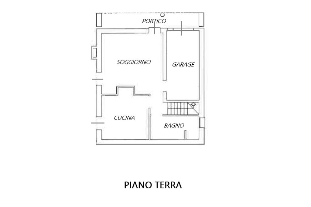 piano terra ingresso da porticato esterno, ampio soggiorno di 21 cucina abitabile di 12 bagno di 6 mq. finestrato con vasca, garage collegato alla parte abitativa