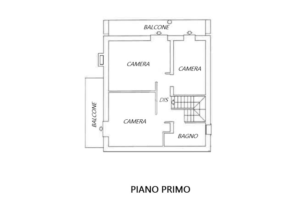 piano primo zona notte composta da tre camere da letto ( matrimoniale da 21 matrimoniale da 18 mq, singola da 10 mq ), bagno con doccia e due ampi balconi
