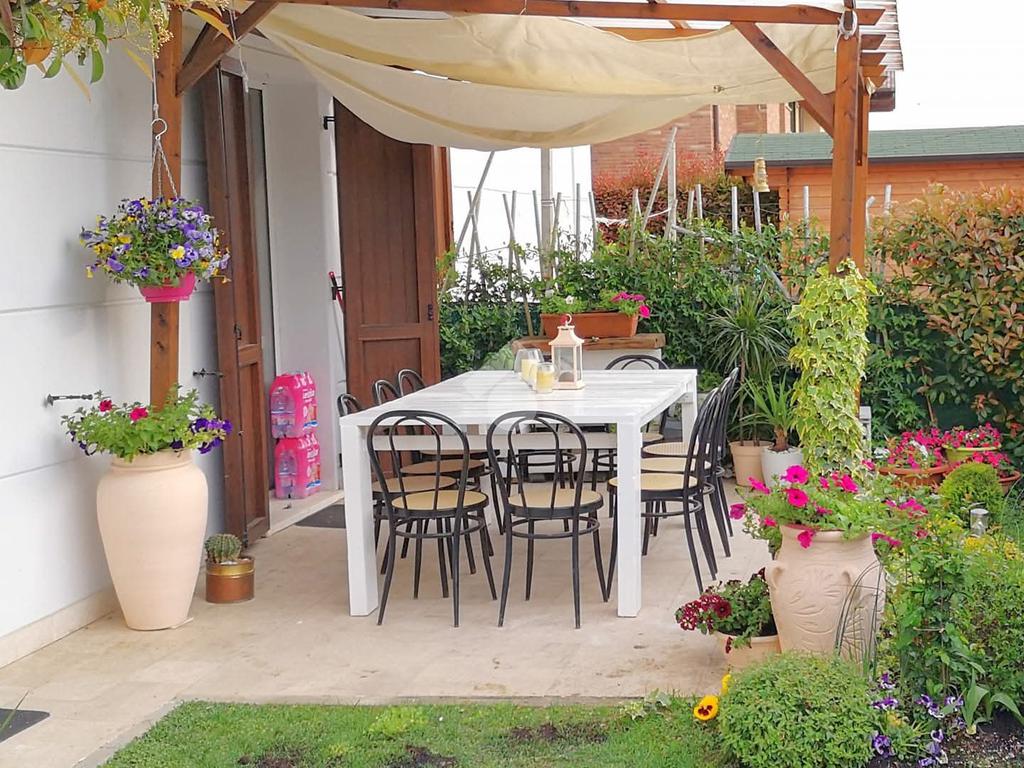 Esternamente la corte privata è in parte pavimentata e in parte adibita a bellissimo giardino curato e piantumato.